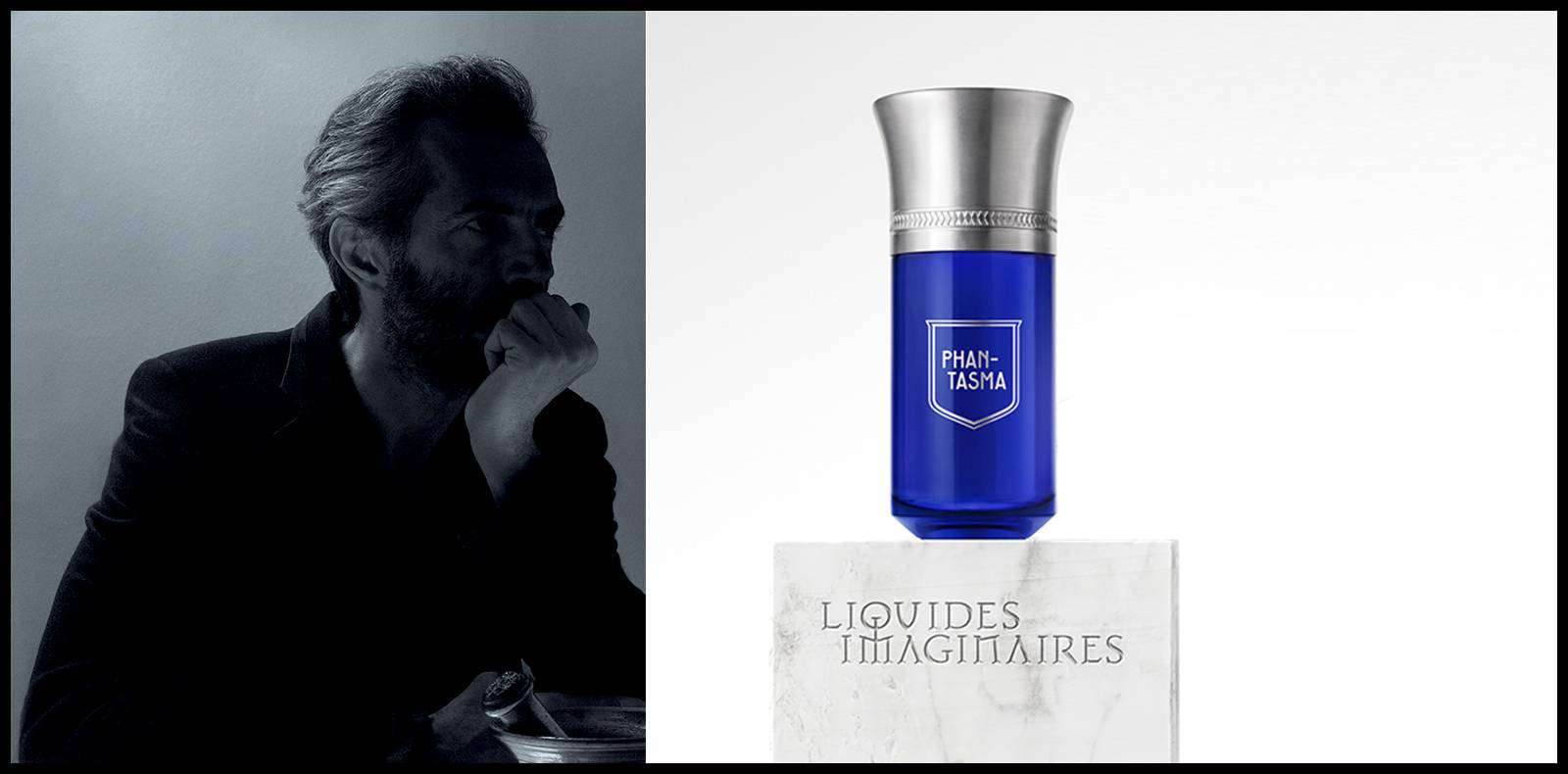 Philippe di Méo, Directeur Artistique de la maison de parfums Liquides Imaginaires, remet son ouvrage sur la table. Il revoit totalement l’écriture de la fragrance Phantasma lancée en 2014 dans le cadre d’une édition limitée. S’inspirant du souvenir de geishas croisées dans un bar de Tokyo déambulant au milieu des verres de saké et de gingembre frais, il imagine une création olfactive relatant tout à la fois la présence fantomatique de ces femmes fardées de blanc spectral ainsi que les effluves perçus de-çi de-là. Avec l’aide du compositeur de parfums Anne-Sophie Behaghel, Philippe di Méo propose aujourd’hui une création ultra raffinée dominée par un vent poudré de thé vert, de thé noir et de gingembre traversé d’un accord saké. Le parfum s’affiche dans une urne bleue à découvrir en version 50 ml (tout nouveau format) ou 100 ml. Eau de parfum Phantasma, Trilogie des Humeurs, LIQUIDES IMAGINAIRES.180 euros, les 100 ml.