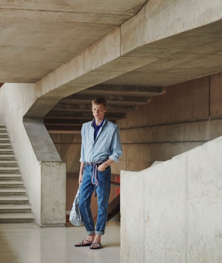 Wandering around the National Dance Centre in Pantin, Isabel Marant’s spring-summer 2021 man dresses in lightweight and smooth clothes in contrast to the raw energy and pronounced geometry of the place bordering the Canal de l’Ourq. Fluid materials, pastel colours and a relaxed and carefree attitude are the key words of this summer collection.