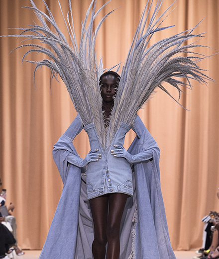 • In 2020, the flamboyant Fashion Freak Show set the Folies Bergère on fire to celebrate Jean Paul Gaultier’s retirement from the fashion spotlight. Although the iconic designer took a step back, the house he founded years ago keeps his legacy alive by inviting each season new designers to rewrite the archives and identity of his house. After Chitose Abe with the label Sacai, then followed by Y/Project and Diesel artistic director Glenn Martens, it is now the turn of Balmain artistic director Olivier Rousteing to unveil his very first haute couture collection for Jean Paul Gaultier. This Wednesday, July 6th , in the heart of the house of Gaultier, Rue Saint- Martin, the show opened with sound archives by the designer before the silhouettes took off to the sound of Mylène Farmer’s hit “Sans Contrefaçon” [“Without Forgery”].