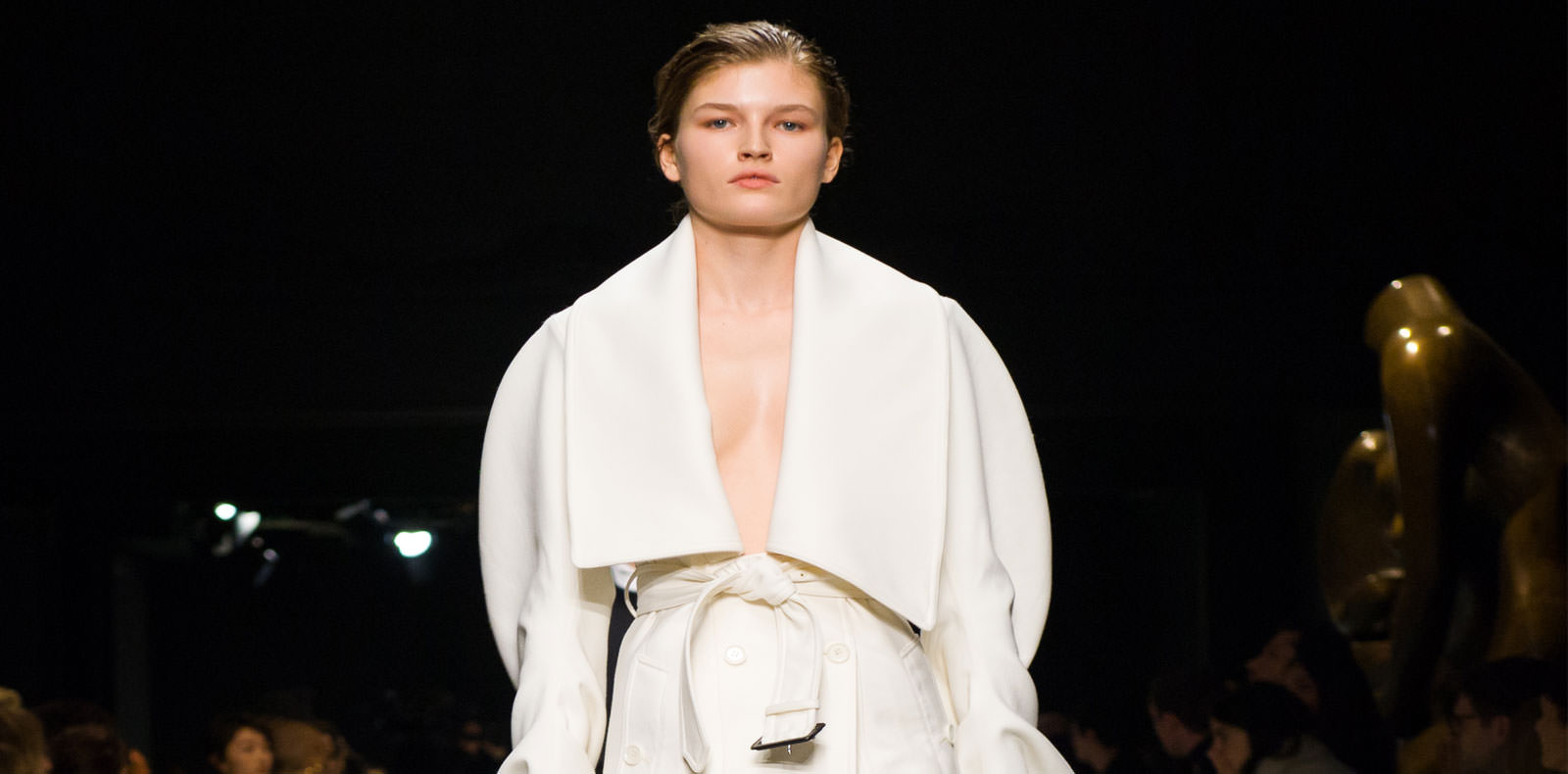 • Model: Julie Trichot from Viva Model Management. Hairstyle: Anna Cofone with R + Co from The Wall Group. Makeup: Tiziana Raimondo with Nars Cosmetics from The Wall Group. Porduction assistants: Fernando Damasceno and Celine Bourreau. Decor: Thomas Bird from Bryant Artists. Production: Guillaume Terrasson from Michele Filomeno.